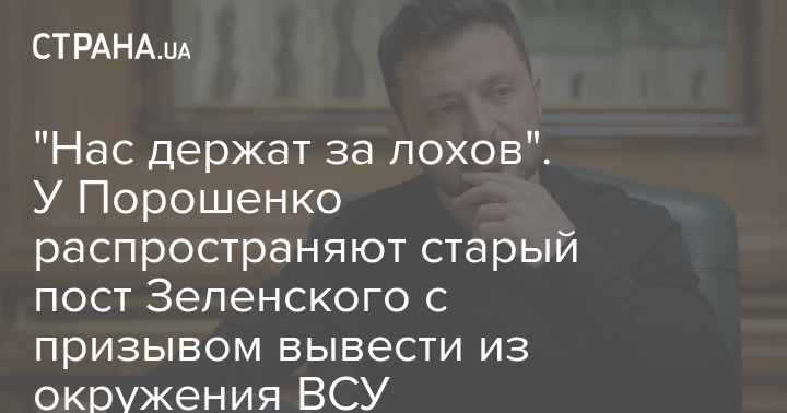 Близькі до екс-президента України Петра Порошенка блогери та політики поширюють стару посаду президента Володимира Зеленського, де він закликав вивести з оточення частини ЗСУ, щоб запобігти загибелі бійців.