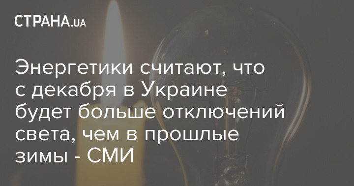 Енергетики вважають, що з грудня в Україні буде більше відключень світла, ніж минулими зимами