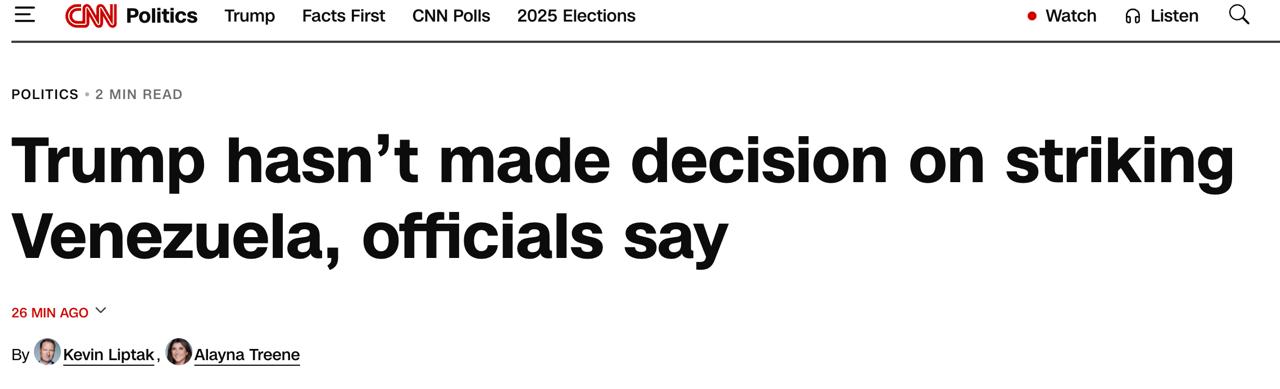 Президент США Дональд Трамп, як і раніше, не прийняв рішення про удари по Венесуелі.