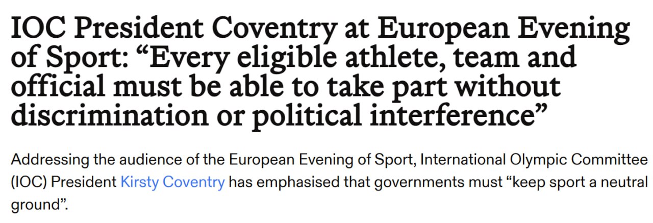 Президент Міжнародного олімпійського комітету (МОК) Кірсті Ковентрі закликала припускати всіх спортсменів без політичного втручання.