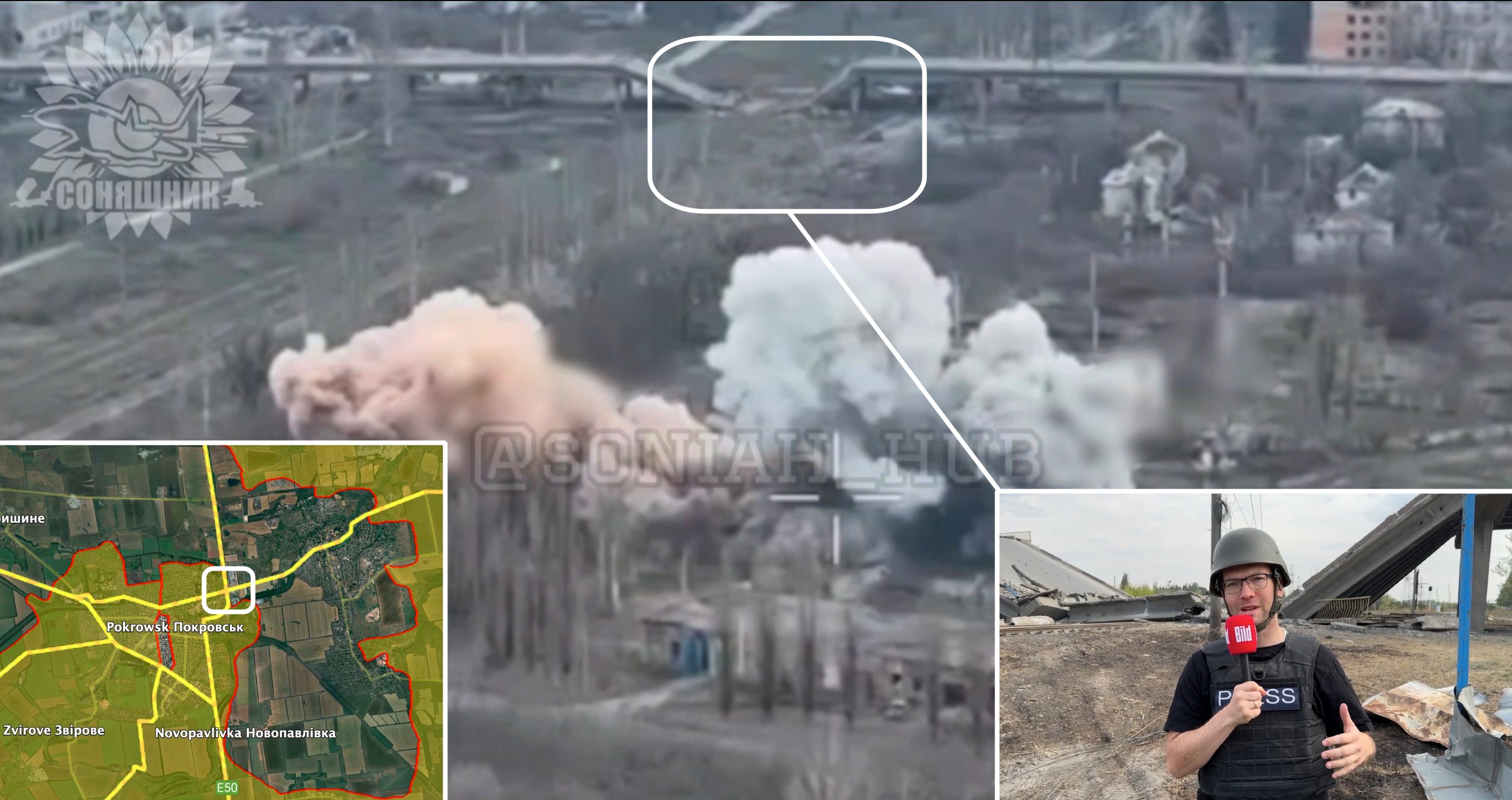 У Покровську росіяни зайняли одне із перехресть північної частини міста, заявив військовий оглядач газети Bild Юліан Репке. Він опублікував карту місця, з якого раніше вів репортаж, та заявив, що зараз воно під контролем росіян.