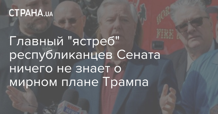 Один із головних "яструбів" у Республіканській партії, сенатор Ліндсі Грем заявив, що "нічого не знає" про мирний план президента США Дональда Трампа, який сьогодні офіційно передали президенту України Володимиру Зеленському.