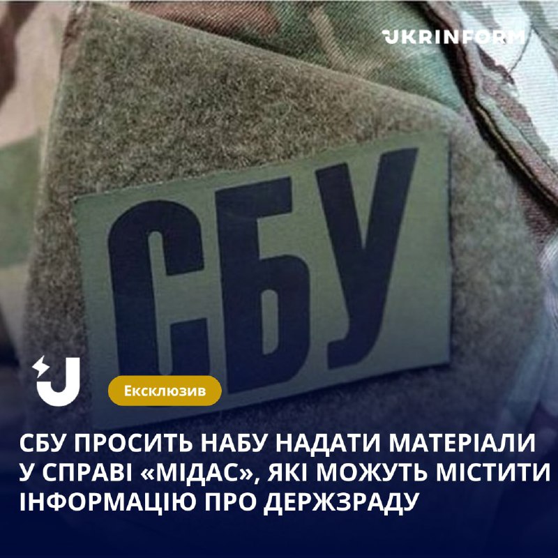 Служба безпеки України звернулася до Національного антикорупційного бюро України з проханням надати матеріали у справі "Мідас", які можуть містити інформацію про державну зраду.