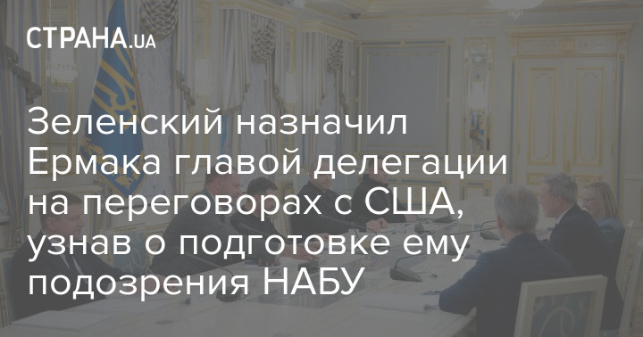 Володимир Зеленський ухвалив рішення про призначення керівника Офісу президента Андрія Єрмака головою української делегації на переговорах із представниками США після того, як дізнався про підготовку йому Національним антикорупційним бюро України підозри.