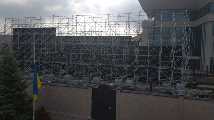 У столиці Киргизстану Бішкеку під час візиту глави Кремля Володимира Путіна біля посольства України виставили величезний екран, який приховав і посольство, і український прапор.