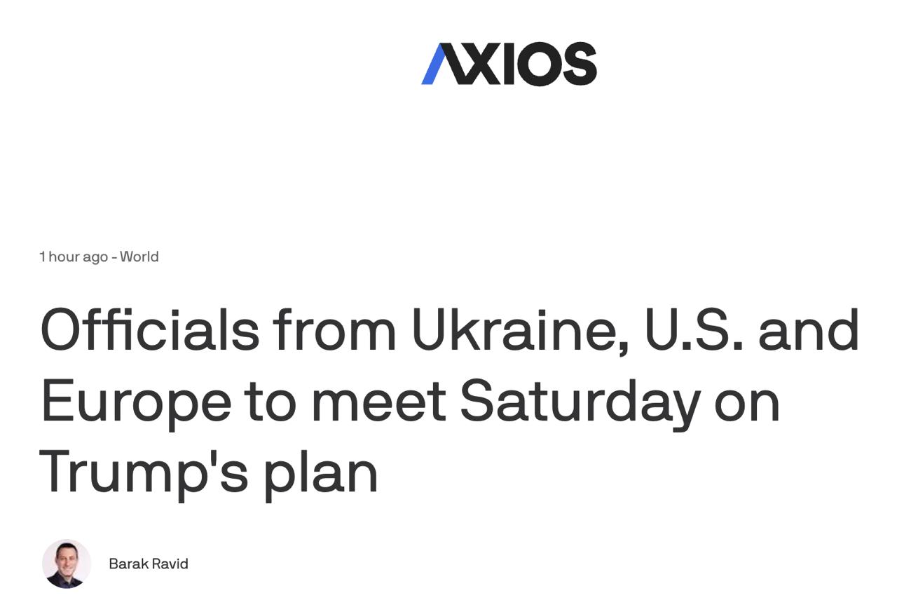 Як повідомляє Axios з посиланням на джерела в Білому домі та українського чиновника, представники США, України, Франції, Німеччини та Британії збираються обговорити мирний план та європейсько-українські редагування до нього в суботу в Парижі.