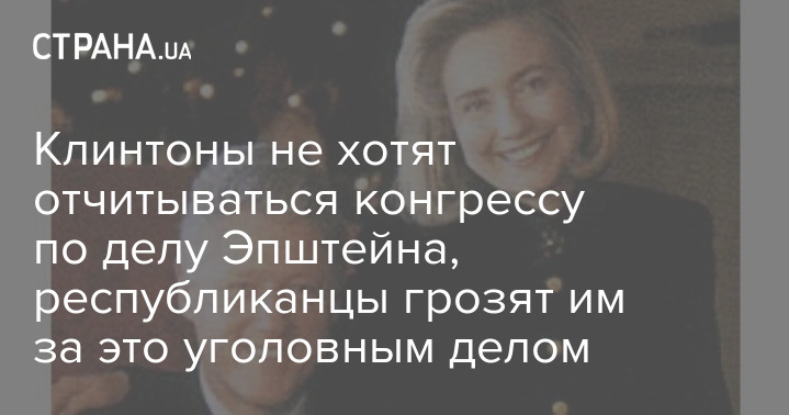 Республіканці в палаті представників загрожують колишньому президентові США Біллу Клінтону та його дружині, колишній главі Держдепу Хілларі кримінальною відповідальністю у справі фінансиста Джеффрі Епштейна.