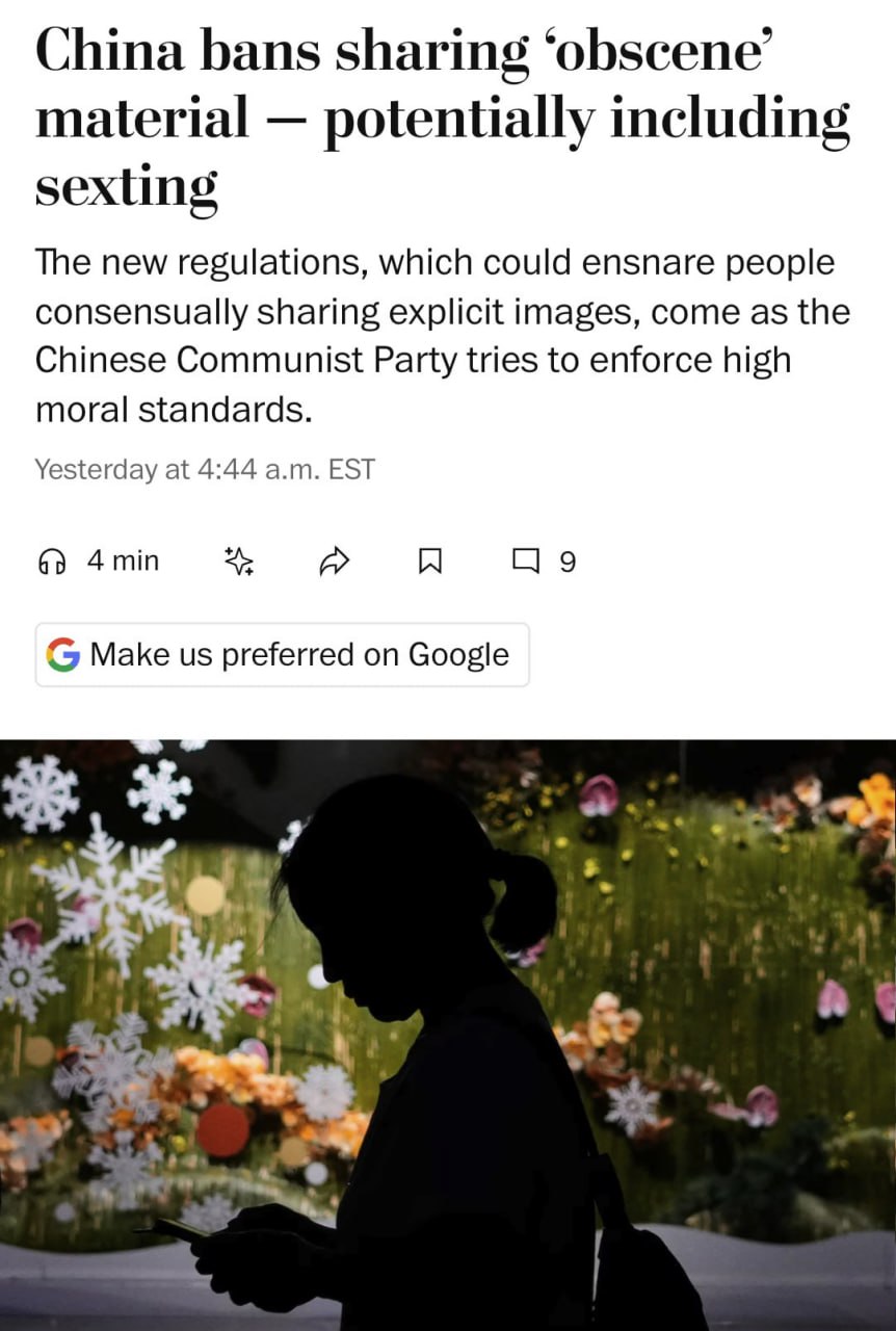 З 1 січня у Китаї заборонять порноконтент навіть у особистих листуваннях - WP