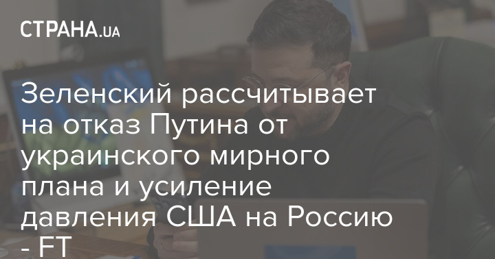 Зеленський розраховує на відмову Путіна від українського мирного плану та посилення тиску США на Росію - FT