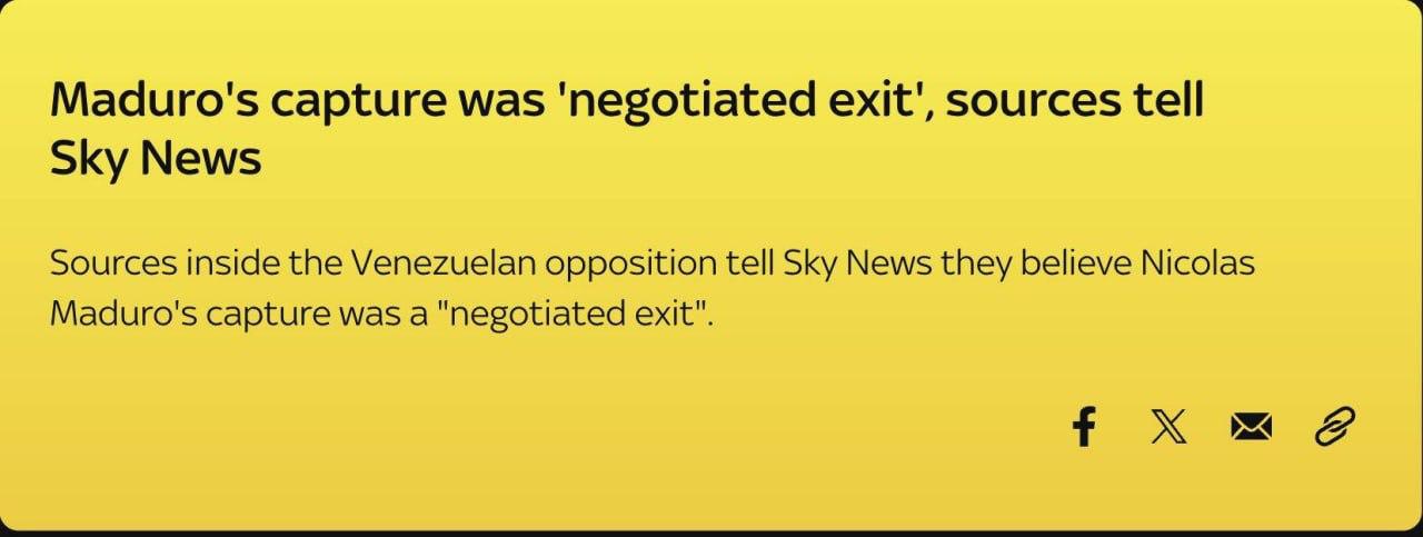 При цьому телеканал Sky News з посиланням на джерела у венесуельській опозиції повідомив, що захоплення Мадуро США було "узгодженим відходом".