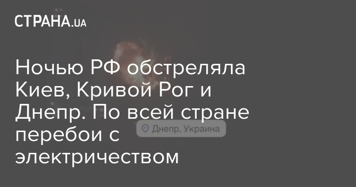 Вночі РФ обстріляла Київ, Кривий Ріг та Дніпро. По всій країні перебої з електрикою