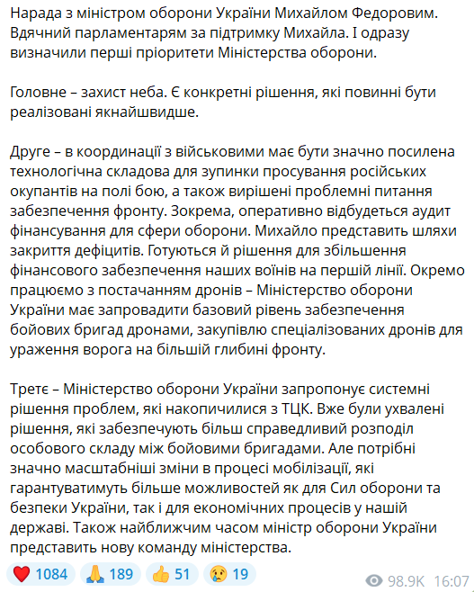 Нагадаємо, новий голова Міноборони вже пообіцяв вирішити проблему ТЦК. Також Федоров розповів, що бюджет відомства перебуває у мінусі на 300 мільярдів гривень.