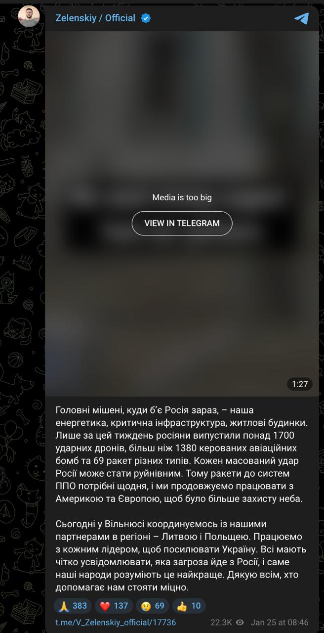 "Головні цілі, куди зараз б'є Росія, – наша енергетика, критична інфраструктура, житлові будинки", – заявив сьогодні Зеленський.