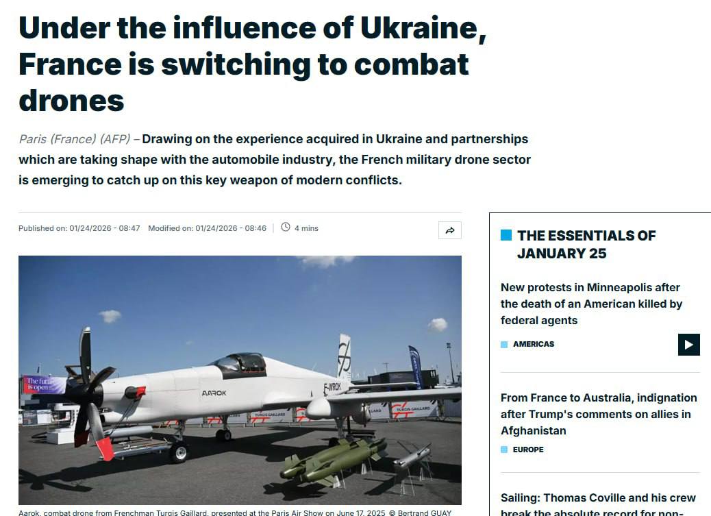 За даними ресурсу, Франція та Україна активно розвивають співпрацю у сфері виробництва безпілотної зброї, частину з якої було передано Україні.