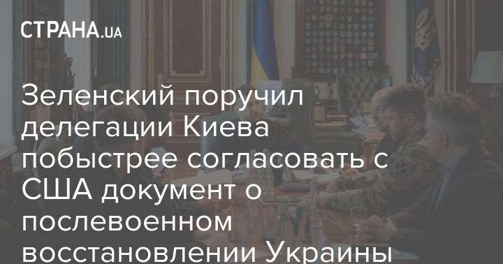 Президент України Володимир Зеленський доручив українській делегації якнайшвидше узгодити зі США документ про повоєнне відновлення країни.