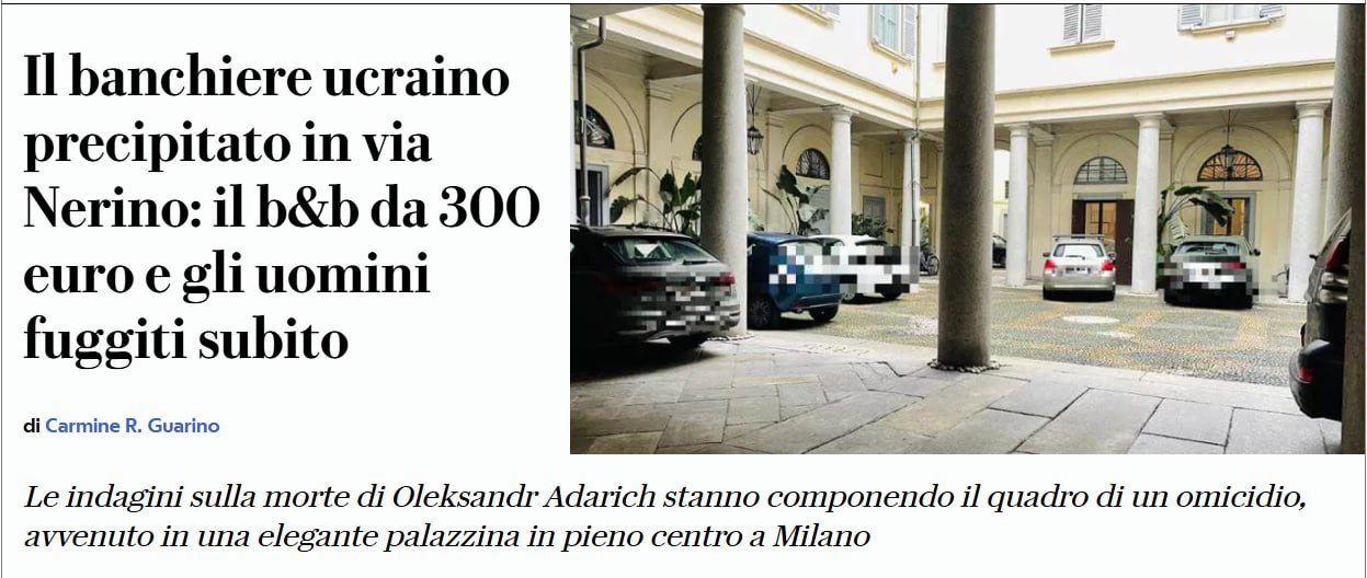 В Італії вбили та викинули з вікна українського банкіра Адарича - La Republicca