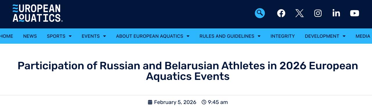 "Спортсмени з російським або білоруським паспортом, які виступають у молодіжних та юніорських категоріях, більше не підпадатимуть під обмеження щодо участі в європейських змаганнях з водних видів спорту як в індивідуальних, так і в командних змаганнях. Російські та білоруські спортсмени будуть допущені без перевірок біографічних прапорів, гімнів, уніформи та супутніх елементів", - повідомляє федерація.