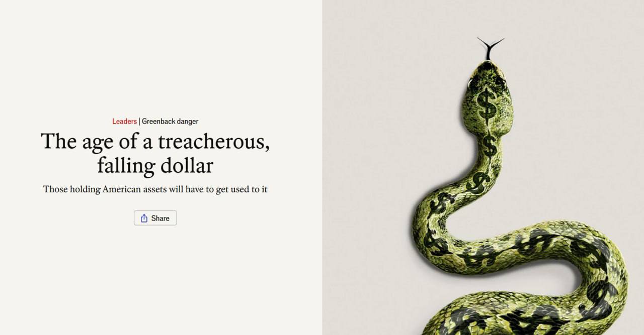 Про це пише британський журнал The Economist з посиланням на динаміку індексу долара, що просів із січня минулого року приблизно на 10% до основних валют.