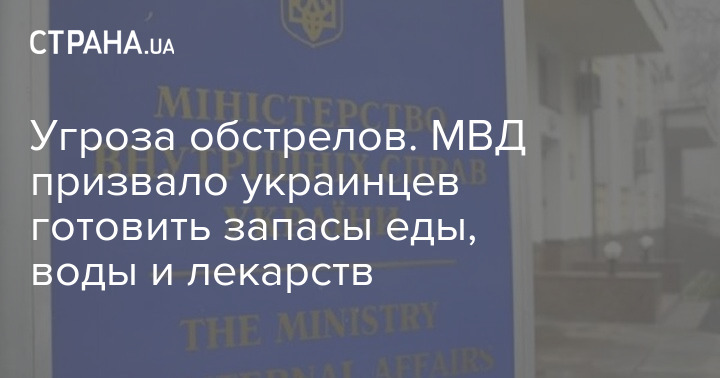 Міністерство внутрішніх справ України закликає мешканців підготувати запаси їжі, води та ліків через загрозу обстрілу.