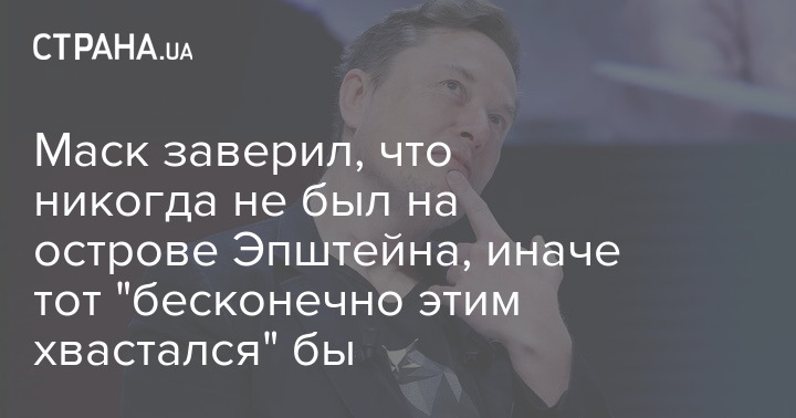 Американський підприємець та мільярдер Ілон Маск заявив, що ніколи не бував на острові педофіла Джеффрі Епштейна.