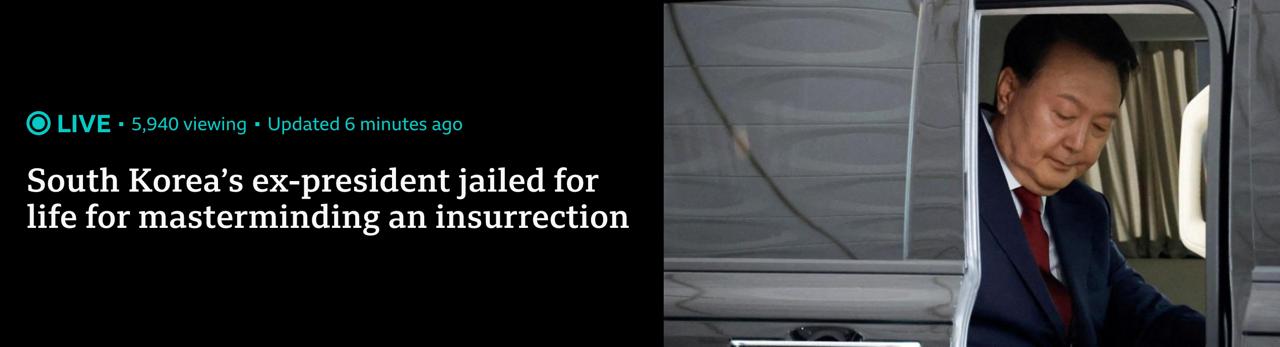 Центральний районний суд Сеула засудив колишнього президента Південної Кореї Юн Сок Йоля до довічного ув'язнення за спробу організації заколоту у грудні 2024 року.