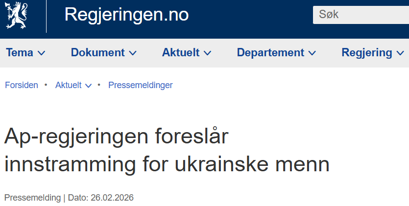 "З осені 2025 року Норвегія, як і багато інших європейських країн, зіштовхнулася зі збільшенням кількості молодих українських чоловіків, які приїжджають до країни. Норвегія вже прийняла найбільшу кількість українців у Північній Європі", - заявила міністр.