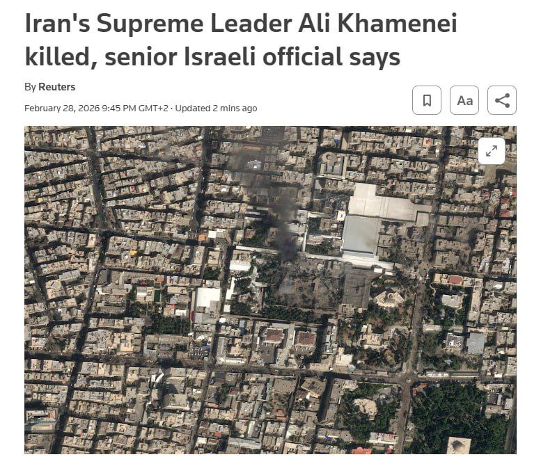 Агентство Reuters також повідомляє, що аятола Хаменеї загинув разом із іншими представниками керівництва країни.
