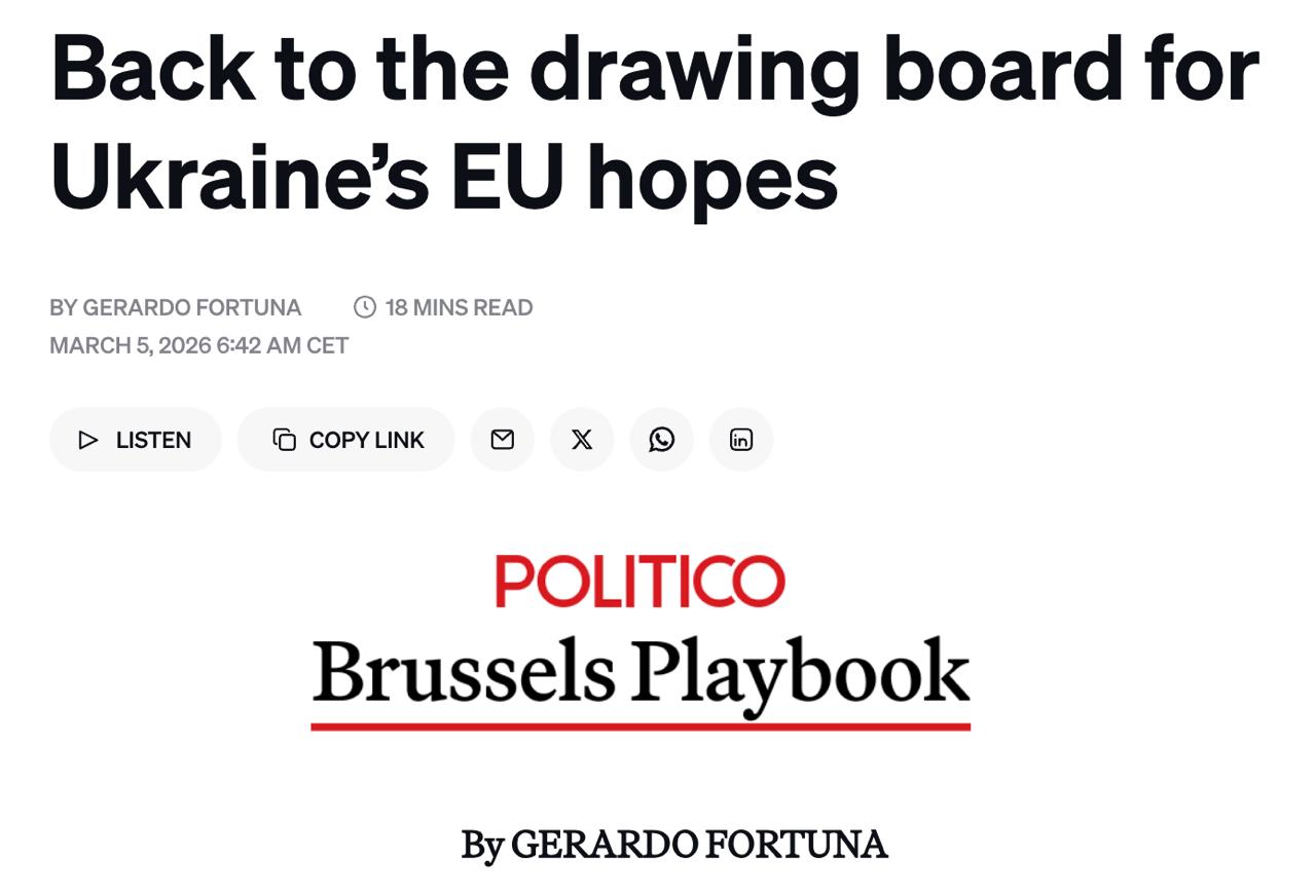 Такий опір фактично блокує можливість застосування моделі "спочатку членства, потім інтеграція", яку виконавчі органи ЄС просували, сподіваючись ухвалити Україну до Союзу до 2027 року, зазначає видання.