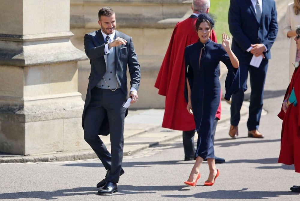 44-летняя Виктория Бекхэм, дизайнер и жена футболист Дэвида Бекхэма, вопреки негласным правилам не надевать темное, пришла на свадьбу в черном наряде и красных туфлях. Источник фото: celebeyes.com