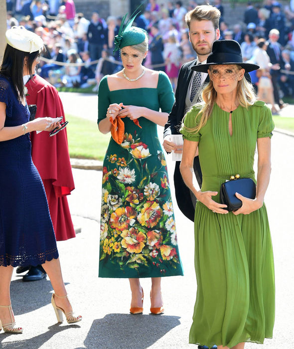 Это приталенное платье горчичного цвета и элегантная шляпка с вуалью, которые надела супруга американского актера Джорджа Клуни, 40-летняя юрист Амаль Клуни, и зеленое платье с цветами на юбке от Dolce & Gabbana у 28-летней Китти Спенсер – племянницы принцессы Дианы и двоюродной сестры жениха.