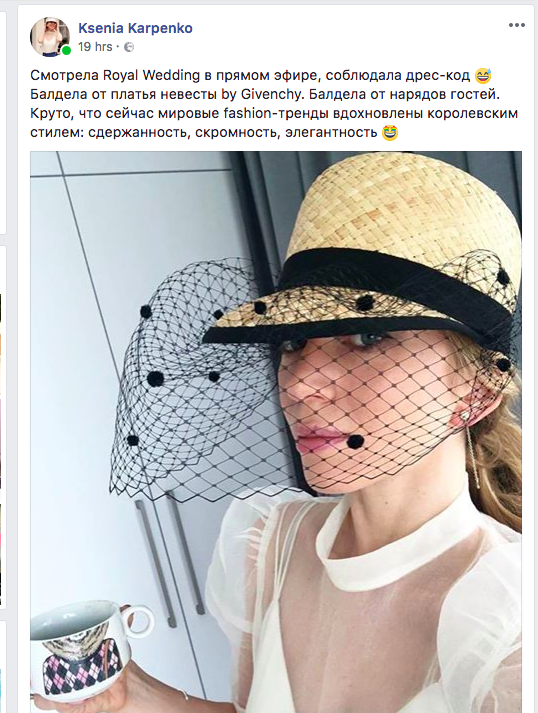 "С точки зрения стилистики: Меган выбрала платье в холодном белом оттенке, при своей "теплой" внешности и низком контрасте. Потому холодный оттенок подчеркнул пятнышки пигментные, мимические морщинки. И платье, возможно, нужно было бы подогнать. Ткань плотная, под мягкую внешность обычно лучше подходит легкая, струящаяся. Например, шелк, шифон, органза кремового сливочного оттенка. Ну и при фигуре-прямоугольнике можно было выделить талию монохромной имитацией пояса, сузить талию. Так силуэт создавал бы совершенные песочные часы. Что касается трендов: сдержанность и закрытость – это new sexy. Роскошь – в простоте. Но! Я считаю, что для невесты самой – свет изнутри, искренность, подлинность чувств – самый лучший наряд невесты, и здесь Меган на высоте. Лучше самое нелепое платье и любовь, чем нелепая любовь и точное попадание в стилистику", – написала Карпенко у себя в Facebook.