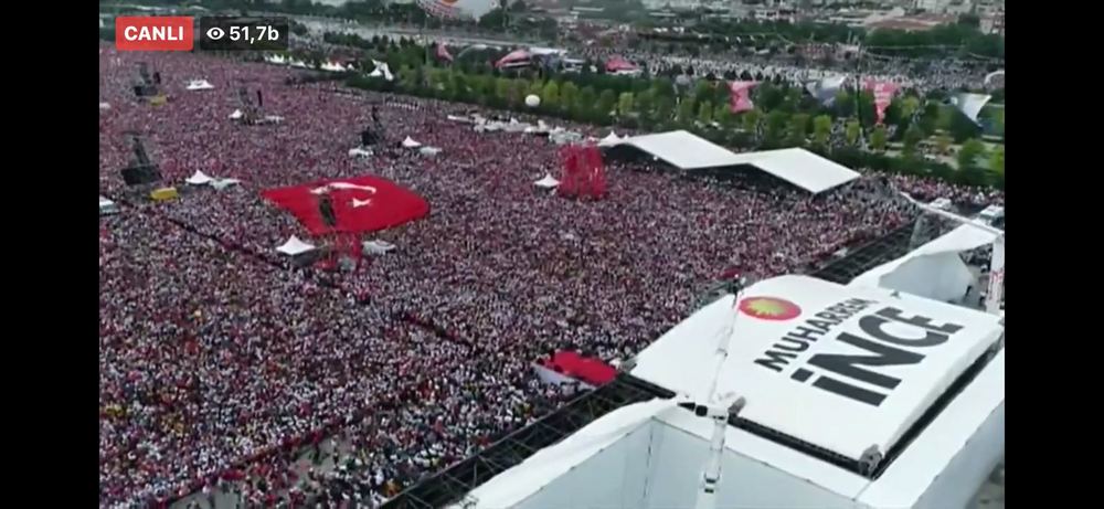 На митинге оппозиционного кандидата Индже накануне выборов собралось, по оценкам организаторов, около миллиона человек. Фото: стопкадр с видео онлайн-трансляции в Facebook