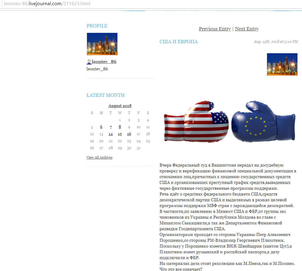 Именно leontev-86, судя по всему, и является первоисточником обнародования в середине августа в Сети сведений об уголовных неприятностях со стороны США для президента Украины и самого влиятельного человека Молдовы. После чего эти данные с некоторыми вариациями опубликовали еще ряд публичных проектов.