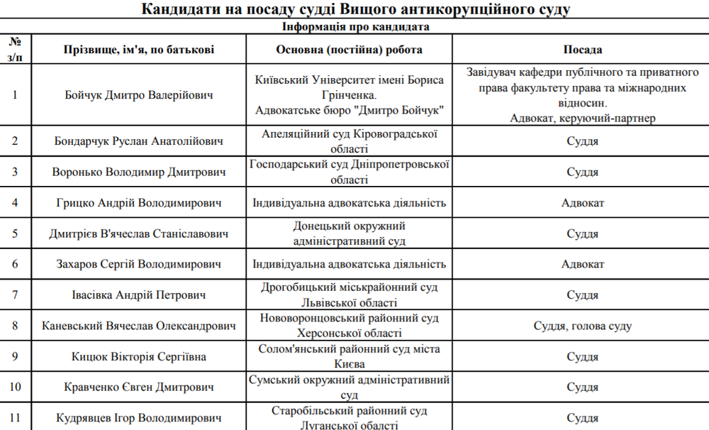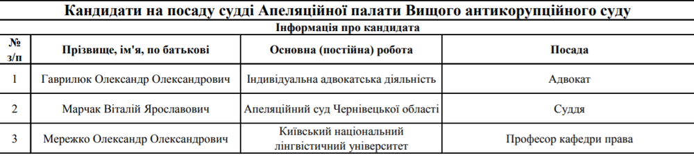 Конкурсанты, подавшие документы для участия в отборе судей ВАКС по состоянию на 4 сентября, источник фото: vkksu.gov.ua
