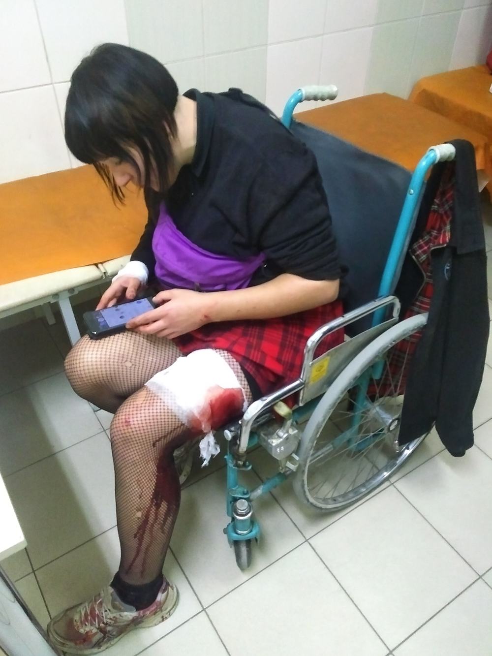 У Вероники Яблонской пробита ножом нога и сломана рука, у Дмитрия Купера выбиты суставы на пальцах, избиты ноги, порезано плечо.