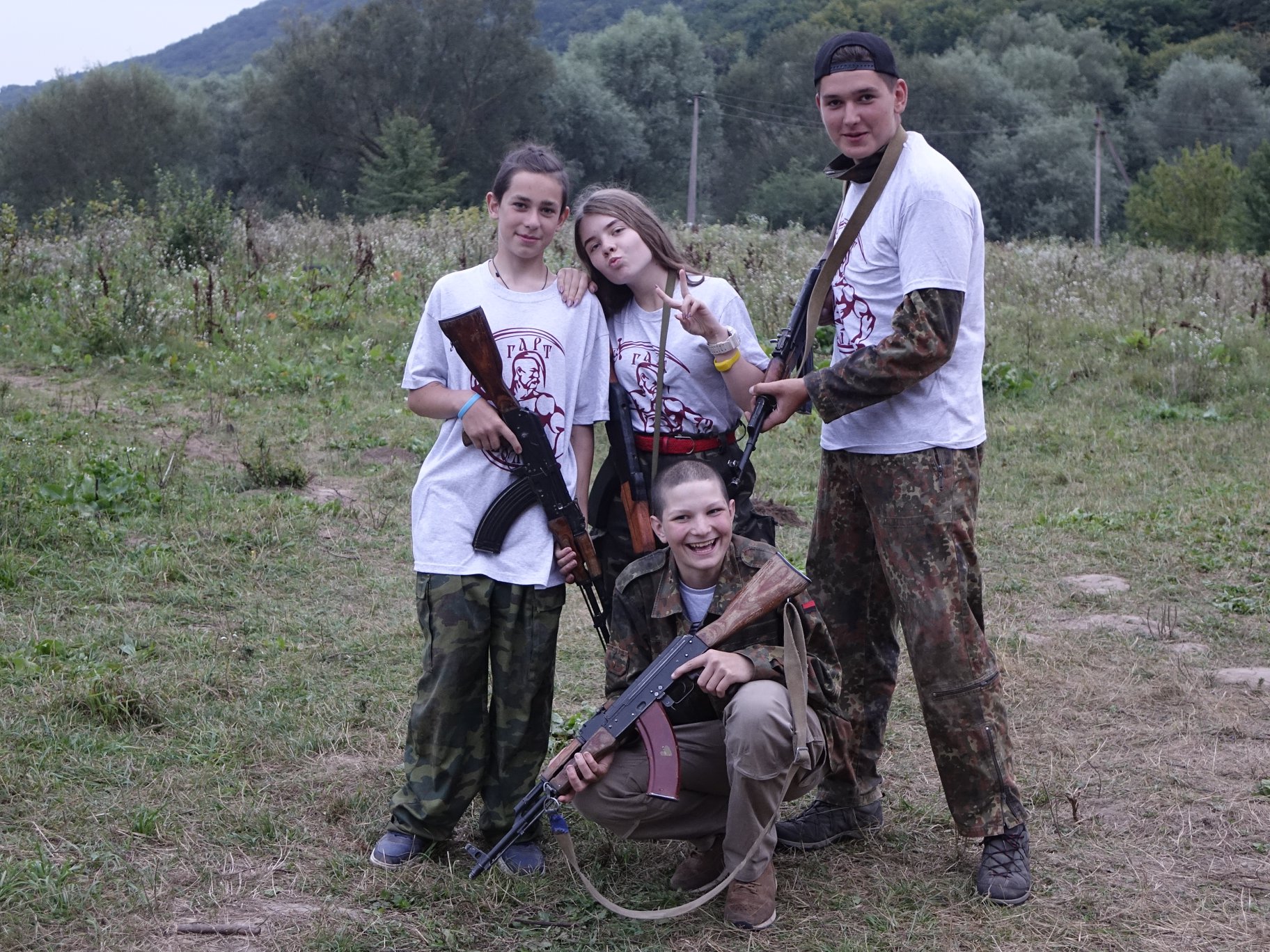 В Украине есть еще детские лагеря, подобные "Гарту Волі". Например, "Азовец" под Киевом, где детей 9-17 лет учат стрельбе из деревянного муляжа АК-47.