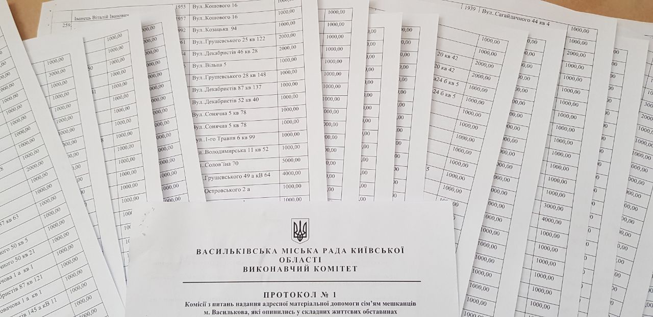 Список получателей по программе "Турбота" в Василькове. Фото "Страна"