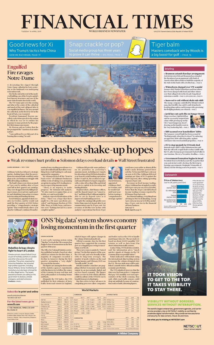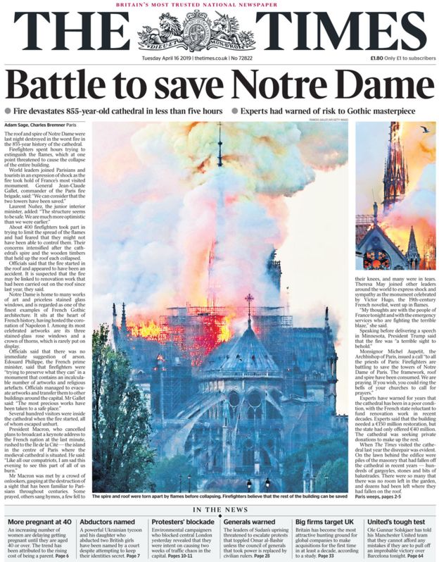 Financial Times: "Охваченный пламенем. Пожар разрушил Нотр-Дам"