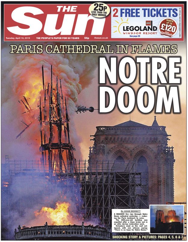 The Sun: Парижской собор в огне: Гибель Нотр-Дама