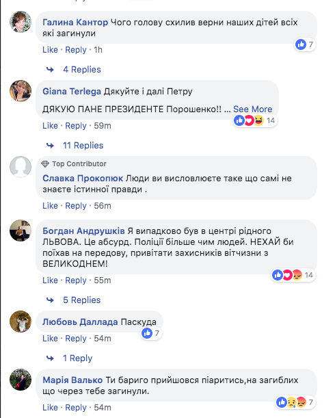 В соцсетях львовяне делились впечатлениями о визите Порошенко. Одни - с придыханием пели дифирамбы о том, что "это лучший президент в истории Украины". Но даже во Львове оказалось немало критически настроенных к уходящему Гаранту (все-таки 34% львовян проголосовали за Зеленского).