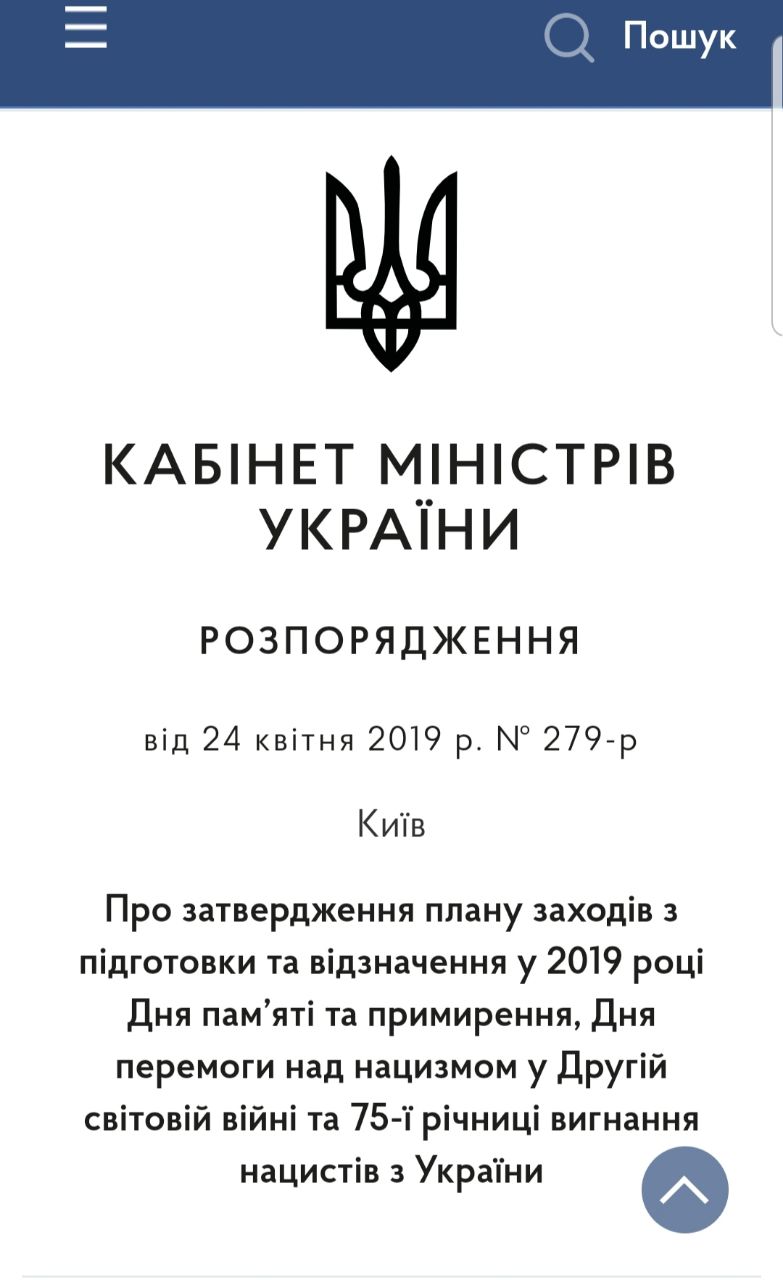 Текст документа практически ничем не отличается от минувших лет. Исключением стало добавление еще одной даты - 28 октября, 75-летия изгнания нацистов из Украины. В остальном Кабмин предписывает праздновать и 8, и 9 мая.