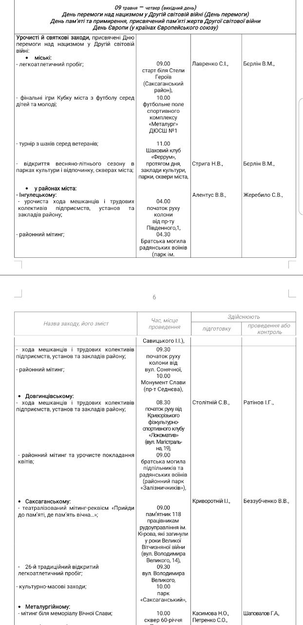Фото: план мероприятий по районам Кривого Рога на 9 мая