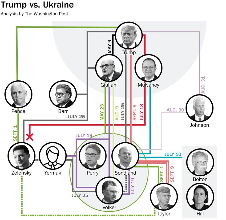 Американские СМИ рисуют схемы участников и свидетелей "Украинагейта". Источник: Washington Post