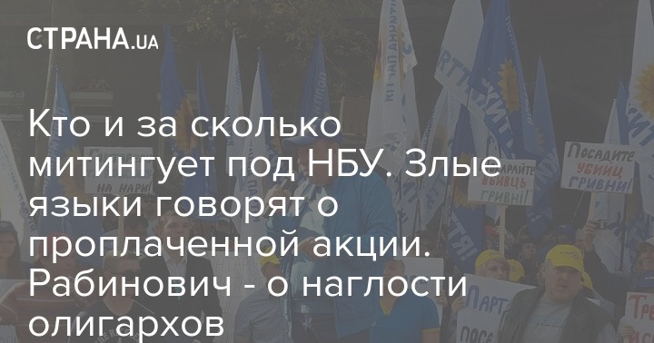 В раскрутке темы проплаченности участников митингов Рабинович обвиняет руководителей "Оппозиционного блока", с которыми он в последнее время враждует. Как мы уже писали, Рабинович потребовал от НАБУ расследовать вопрос недвижимости нардепа от ОБ Сергея Левочкина во Франции. В ответ в Оппоблоке обвинили Рабиновича в стукачестве и предательстве (он прошел в Раду по спискам ОБ и до сих пор не вышел из фракции, опасаясь потерять мандат).