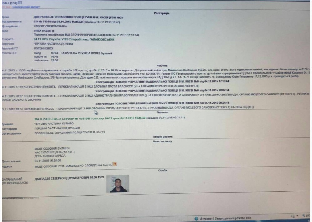 "Пидозра" Севериона Дангадзе, согласно которой он действовал вместе с Саакашвили, Курченко, Дынником и сотрудниками ФСБ, источник фото: facebook.com/nedilko.nikolay