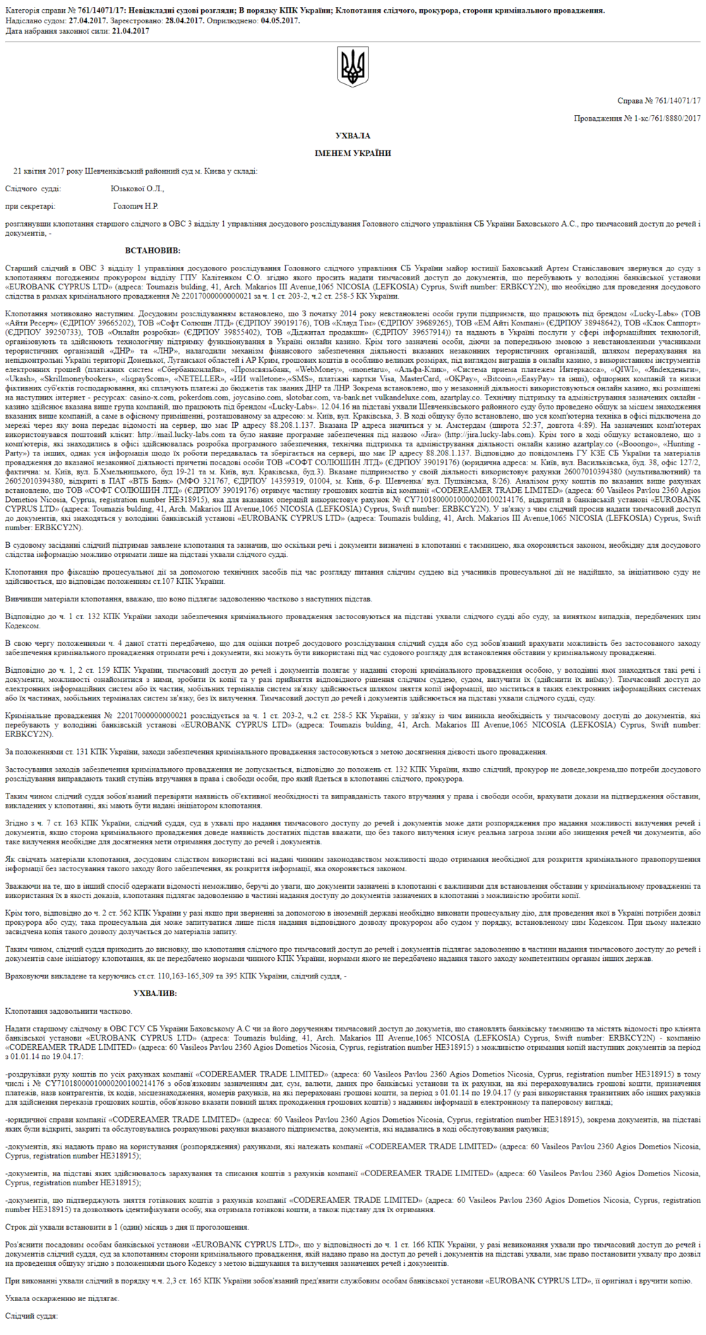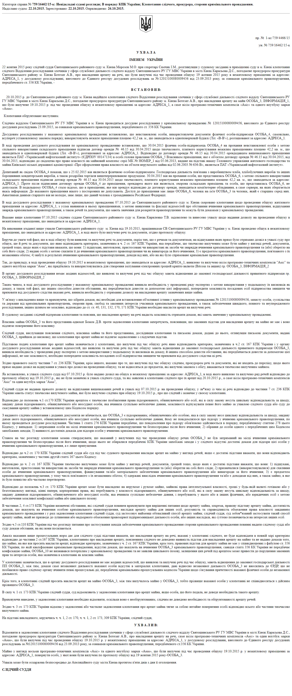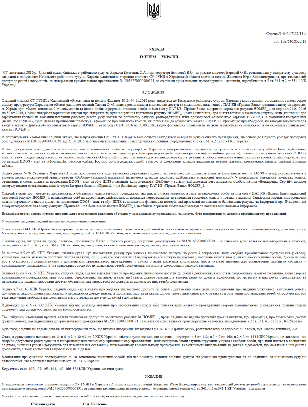 Именно этим желанием можно объяснить обилие в реестре судебных решений запросов в суды от полиции и СБУ на разрешения о проведении обысков и доступе к фермам биткоинов.