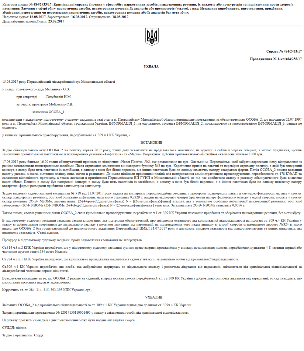 Как правило, продавцы наркотиков находятся за пределами Украины. Чаще всего в Нидерландах, Германии и Китае. Из материалов судебных решений можно понять, какие наркотики наиболее в ходу: это так называемая "синтетика" — метамфетамины, экстази. Реже встречается в судебных делах кокаин.