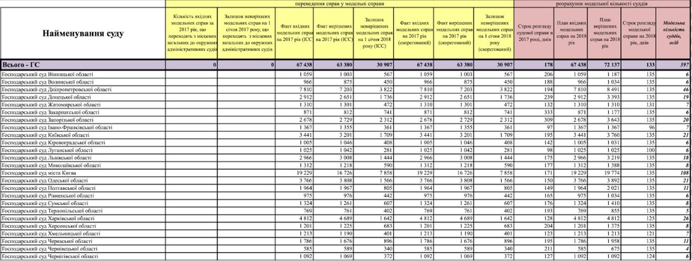 Он предусматривает установление лимита судей для 25 работающих местных судов хозяйственной юрисдикции (за исключением хозсудов в АР Крым и Севастополе, которые выведены за скобки). Их в ГСА окрестили категорией "модельное количество судей", суммарное количество которых должно составить 397 человек.