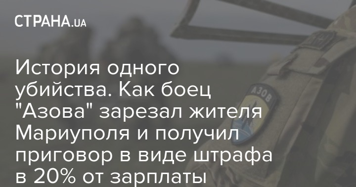 "Страна" недавно сообщала, что боец "Азова", который перерезал горло прохожему в Мариуполе, отделался штрафом в размере 20% от зарплаты. Такой мягкий приговор вынес Орджоникидзевский районный суд Мариуполя.