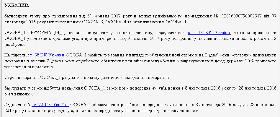 А в качестве наказания суд приговорил "азовца" к двум годам служебного ограничения с выплатой 20% денежного содержания в доход государства.
